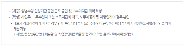 - 다만, 예외적으로 상기 대리인이 없고 중한 상병으로 본인 신청이 어려울 경우 상병수당 진단서 발급 의료기관 또는 사업장에서 신청 가능 (이 경우 홈페이지 신청 불가)