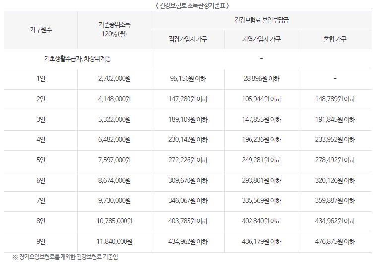 (배우자 및 만 25세 미만 자녀, 피부양자 세대 동일 건강보험증 상 비동거 가족)