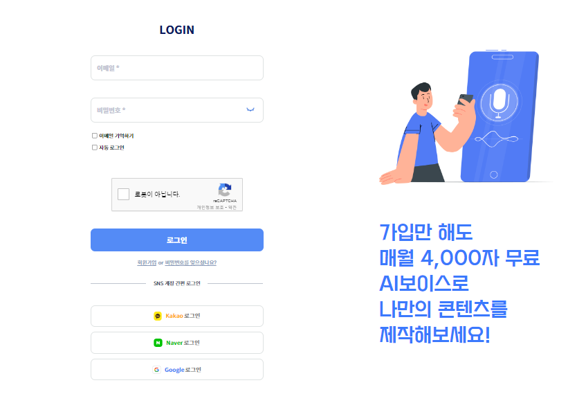 ▶ 회원가입을 통한 로그인과 SNS계정. (카카오/네이버/ Google ) 간편 로그인을 하시면 됩니다.