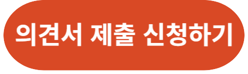 ▶ 현재는 의견제출 기간이 아니기 때문에 9월4일부터 9월25일 사이에 신청이 가능하다는 메세지 창이 뜹니다.