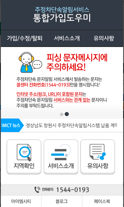 ▶ 주정차 단속 알림 서비스 앱 설치 후 실행하시면 아래와 같은 화면이 뜹니다.