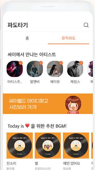 ▶ '나의 감성을 표현하는 BGM' 나의 기분과 취향을 노래로 보여주는 BGM, 뮤직파도에서 내 감정에 따른 BGM 추천부터 미리듣기, 아티스트 미니홈피까지 즐겨보세요.
