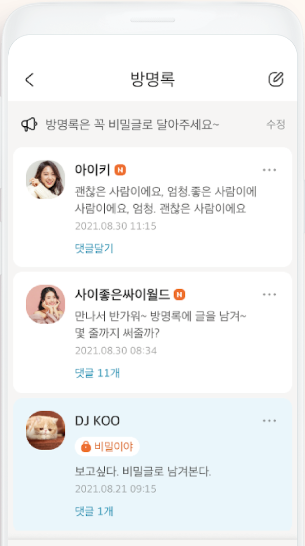 - 일촌 기능을 통해 내가 보여주고 싶은 사람에게만 콘텐츠를 공유할 수 있습니다.