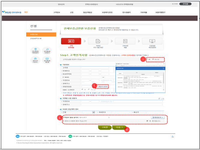 ▶ 전세보증금 반환보증 신청- Step1. 고객인적사항