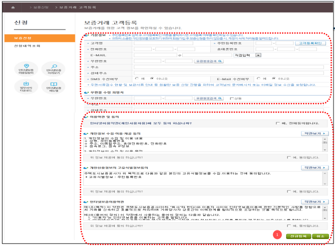- 보증거래에 필요한 최소한의 고객의 정보를 신규등록합니다.