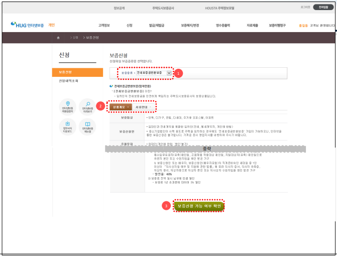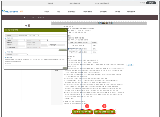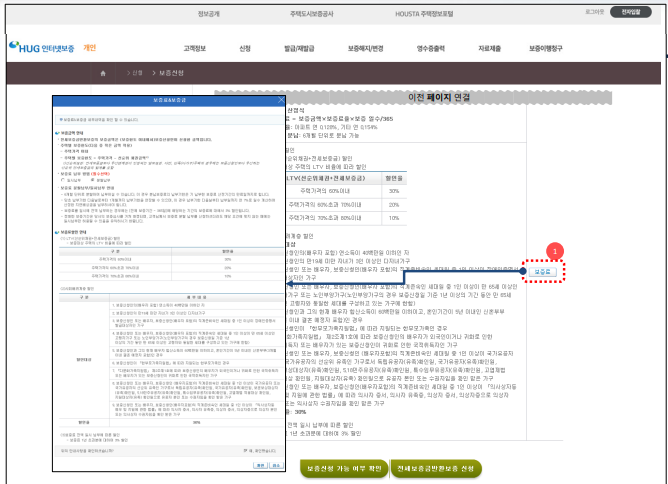 - ③을 클릭하여 보증 신청 가능 여부를 확인합니다.