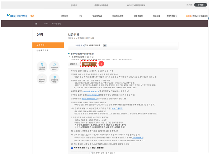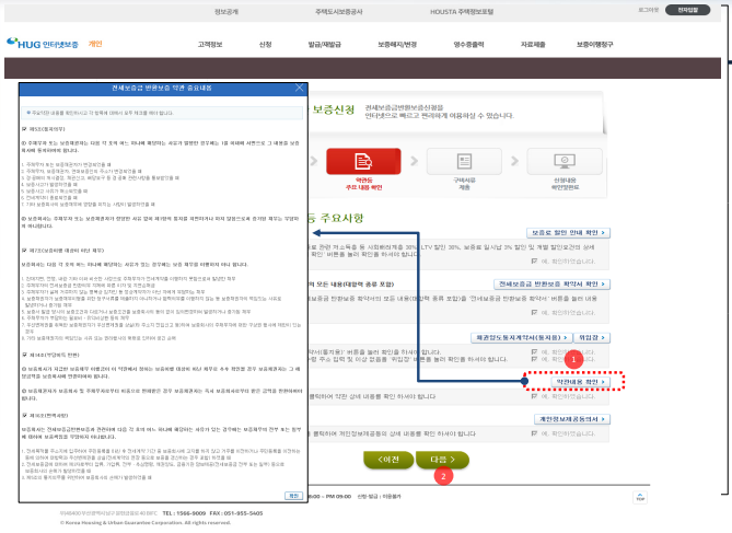 ▶ 전세보증금 반환보증 신청- Step2. 약관 등 주요내용 확인