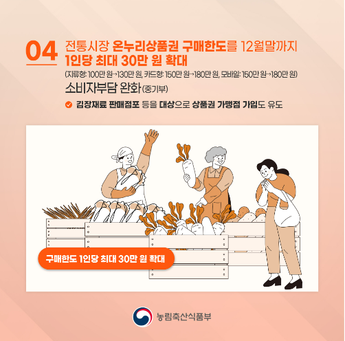 ▶ 전통시장 온누리상품권 구매한도를 12월 말까지 1인당 최대 30만 원 확대