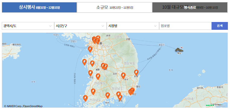 아래 버튼 클릭하시면, 온누리 상품권 환급 받으실 수 있는 전통시장을 확인하실 수 있어요. 우리동네 근방에서 하고 있는 지 알아보시고 혜택 받아보세요.