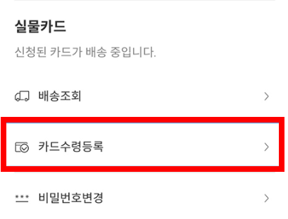 ▶ 본인 수령시 1시간 내에 자동등록이 되지만 대리인이 수령할 경우 앱에서 카드등록 버튼을 눌러서 직접 등록을 해주셔야 합니다.