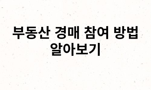 부동산 경매 참여 방법을 알아보려면 경매 공지 확인, 등록 절차, 부동산 정보 조사, 입찰 준비물, 참여 자격 확인, 입찰 전략 세우기 등의 단계를 따라야 합니다. 경매 공지를 확인하고 등록한 후 부동산 정보를 조사하고 입찰 준비물을 준비합니다. 참여 자격을 확인하고 입찰 전략을 세워 경매에 참여합니다. 경매 도중에는 주관 기관의 안내를 따르고 경쟁 입찰자들을 주시하여 최고 입찰가를 제시해 부동산을 낙찰받을 수 있습니다. 준비와 전략을 통해 부동산 경매에 성공적으로 참여하세요.