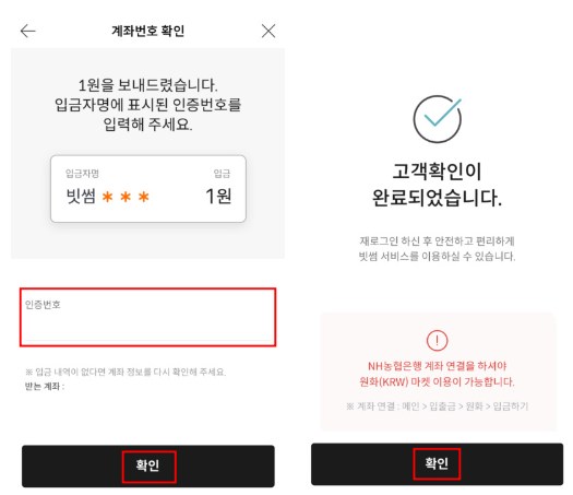 빗썸 거래소 고객확인이 완료되었으면, NH농협은행 계좌 연결을 하셔야 합니다. 아직 농협계좌가 없으시면 아래버튼을 통해서 스마트 뱅킹으로 빨리 계좌를 만드셔서 빗썸 거래소 사용해보시기 바랍니다.