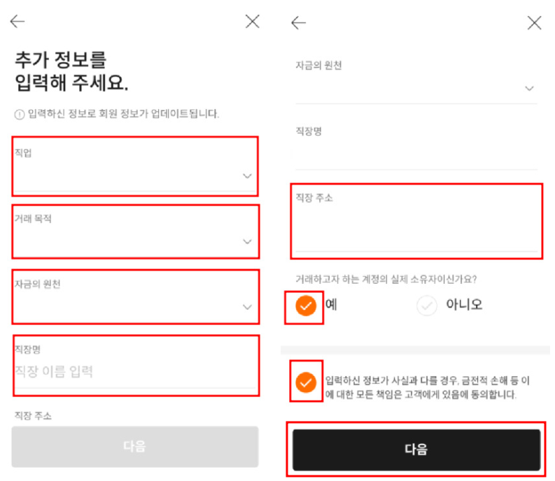 5. 추가 정보를 입력하신 후, 체크사항을 확인하시고 체크하신 후 '다음' 버튼을 클릭해주시면 됩니다.