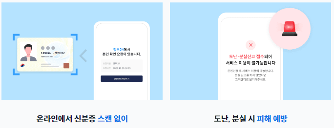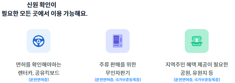 - 오프라인과 온라인에 따로 소지하고 관리하는 불편함이 모바일 신분증 하나로 편리해집니다.