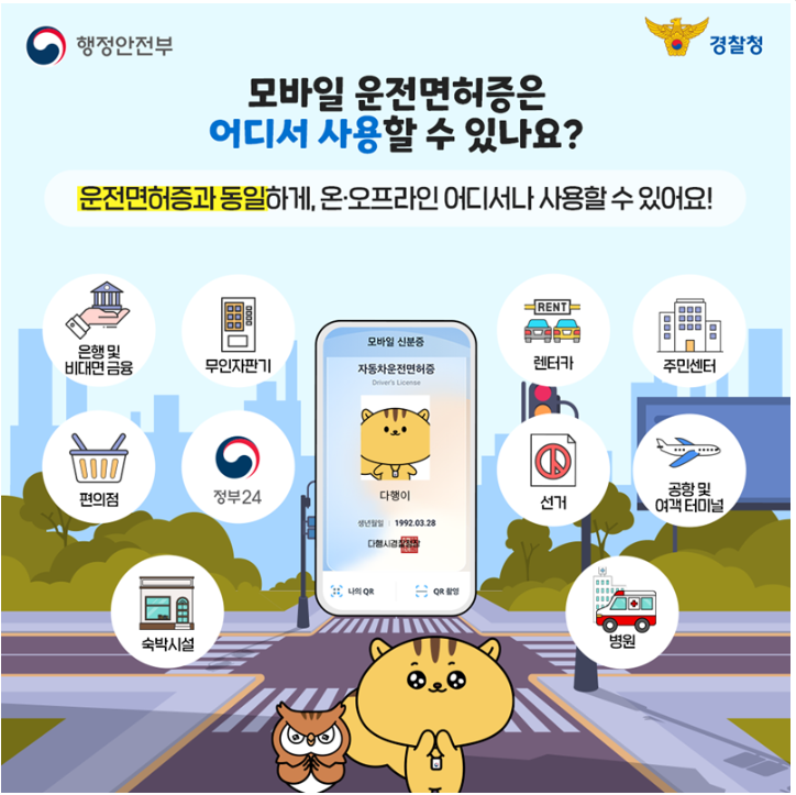 렌터카나 공유 킥보드를 이용할 때, 운전면허증을 제시해야 합니다. 이때 IC 운전면허증이 등록된 모바일 신분증을 제시할 수 있습니다. 또한, 운전면허증은 주민등록증을 대신하여 주류 구매, 지역 주민 혜택, 은행, 관공서, 공공기관 등 다양한 상황에서 사용할 수 있습니다. 지금 바로 아래 버튼을 통해서 빠르게 발급 받아 모바일 신분증으로 편리하게 사용해보세요!