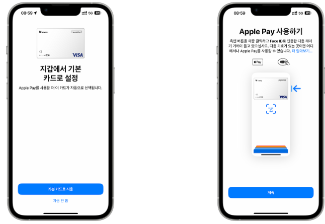 7) 애플페이를 등록하면 아래 사진처럼 등록한 카드를 기본으로 등록할 것인지, 또 사용법에 대해서 알려줘요.