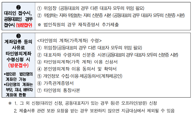 ※ 신청접수 후 7일 이내 신청·접수 순으로 지급예정 / 단, 대상자 신청 급증 시 10일 이내 지급