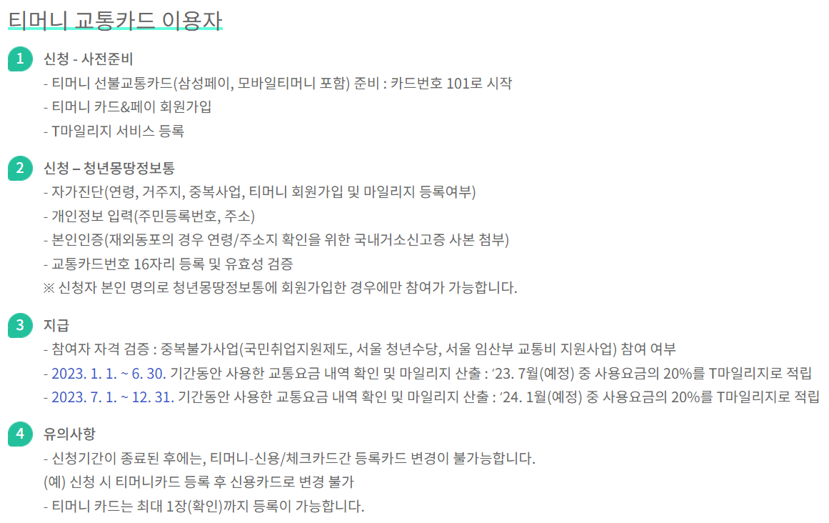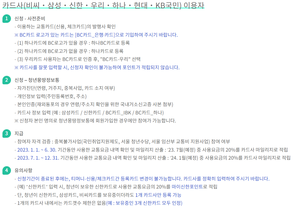 서울시 청년교통비 지원사업 유의 사항