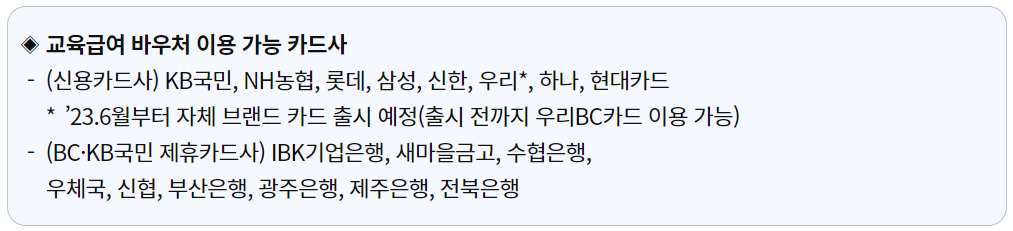 ♧ ’23학년도부터 교육급여(교육활동지원비)가 계좌이체가 아닌 바우처 방식으로 지급됩니다.