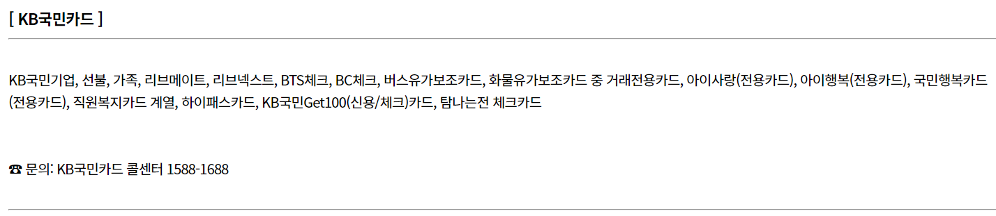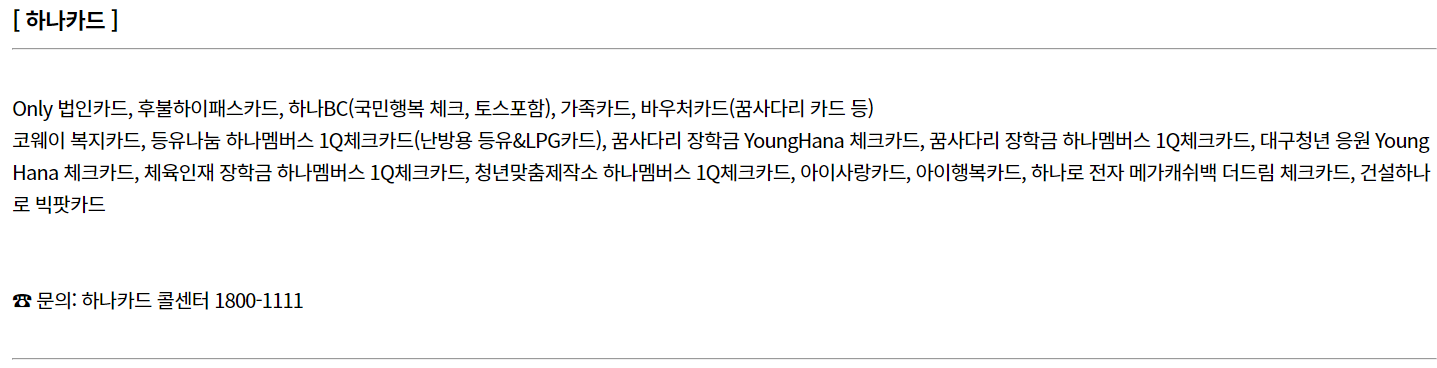 카드사별 바우처 이용 제한 카드 안내