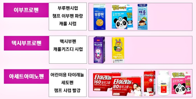 부루펜 시럽, 챔프 이부펜 시럽, 키즈엔펜 시럽, 캐롤 시럽, 콜대원키즈 이부펜시럽