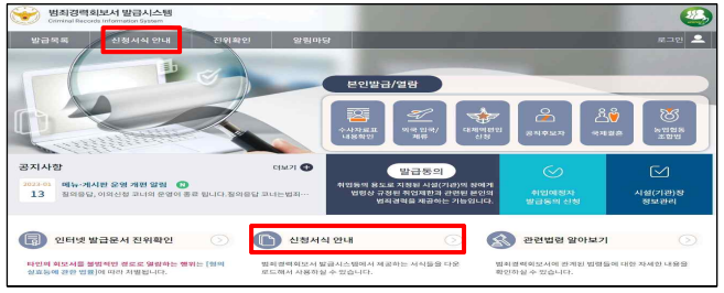 ▷ 범죄 경력회보서 발급시스템 접속 (https://crims.police.go.kr/)