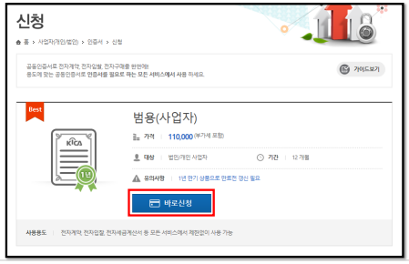 - 인증서 갱신은 유효기간 만료일 60일전 부터 만료일까지만 가능합니다.