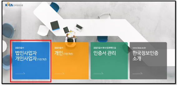▷ 사업자의 경우 파란색 법인 사업자/개인 사업자를 선택합니다.