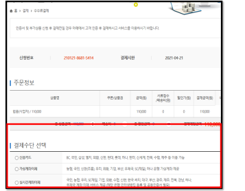 ▷ 요금결제 단계로 신청사항에 따른 비용을 확인하고 결제하면 됩니다.