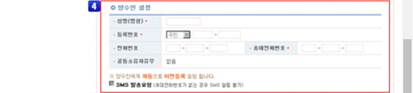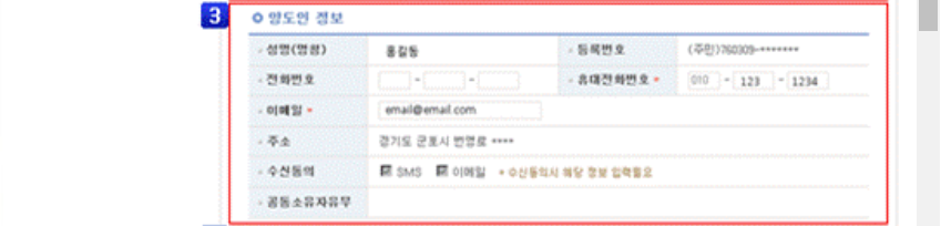▷ 양도인, 양수인 개인정보(성명, 등록번호, 연락처, 이메일 입력)를 입력하면 됩니다.
