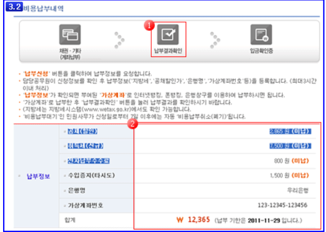 ※ 입금방법은 인터넷 뱅킹, 폰뱅킹, 은행창구를 이용하실 수 있습니다.