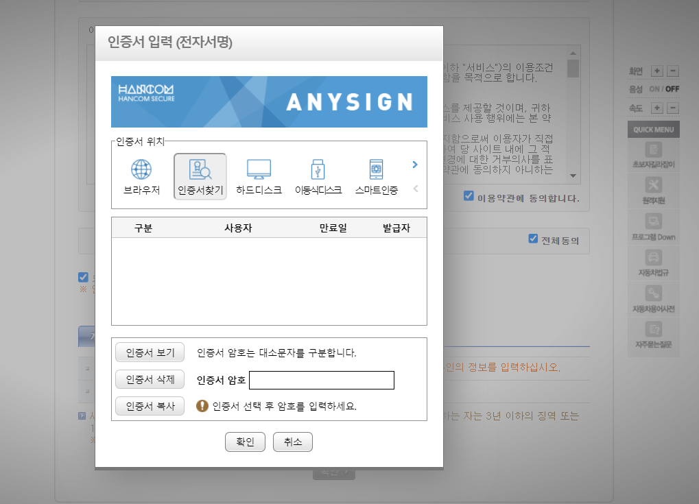 범용 공인 인증서 발급 방법(개인)