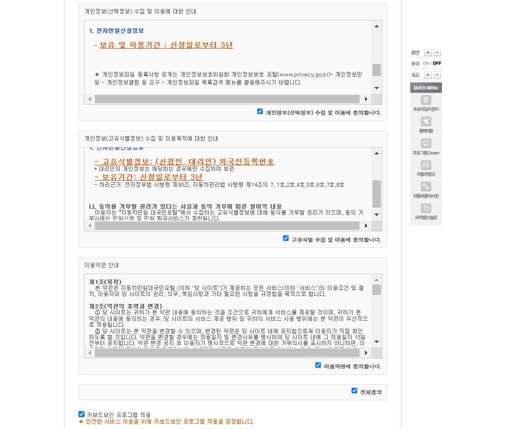 ▷ 개인 정보 이용약관 동의의 체크 박스를 모두 체크 표시를 합니다.