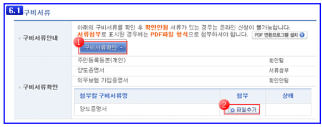 ▷ 이전등록에 필요한 구비서류를 확인하여, 첨부해야할 구비서류는 PDF파일로 변환한 후 첨부하시면 됩니다.
