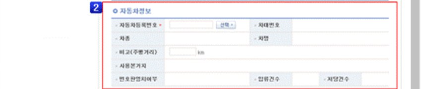. ※ 보유차량이 1대인 경우 설정된 신청차량 정보가 자동으로 표시 됩니다.