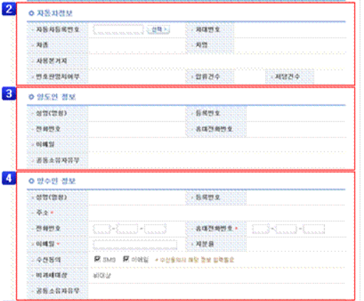 ▷ 자동차 정보 : 매도할 차량을 선택하는데 차대번호를 몰라도 자동차등록번호에서 조회가 가능하고, 선택하시면 됩니다.주행거리는 자동차 양도증명서상에 작성된 주행거리와 동일하게 작성합니다.