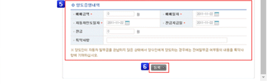 ※ 등록관청에서 등록 심사 후 양수인이 비용 납부를 하시면 들록 및 발급이 완료 됩니다.