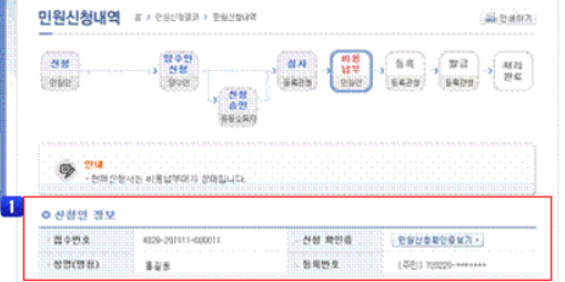 ▷ 신청인정보에 대한 상태, 신청인명, 신청인 등록번호, 신청확인증을 확인할 수 있습니다.