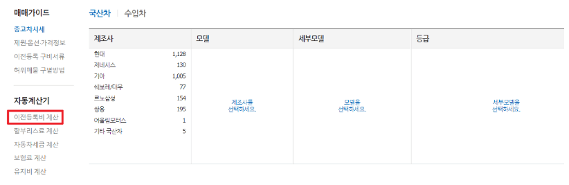 3. 사용 용도를 확인하시고 차량 판매 가격을 입력한 다음 차량 종류와 거주지를 선택한 후 계산하기를 눌러 주시면 됩니다.