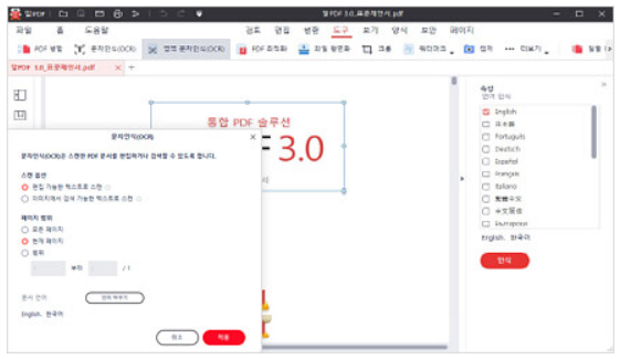이미지로 된 문자를 직접 타이핑하지 않아도 됩니다. 문자 인식(OCR)을 실행하면 스캔된 문서를 편집 가능한 파일로 변경합니다. 특정 영역만 선택하여 문자인식을 적용할 수 있습니다. 스캔 후 이미지된 파일도 수정이 가능하니 다양한 곳에서 사용이 유용합니다.