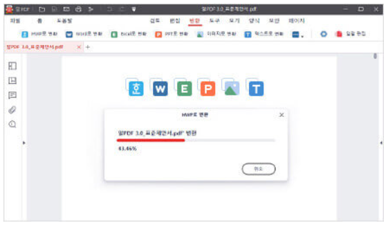 제한이 많던 PDF 문서, 이제 원하는 문서 형식으로 변환하고 손쉽게 작업하실 수 있습니다. 알PDF는 한컴 오피스의 한글 문서(.hwp)를 비롯한 텍스트, 그림 등의 18여가지 포맷으로 변환을 지원합니다.